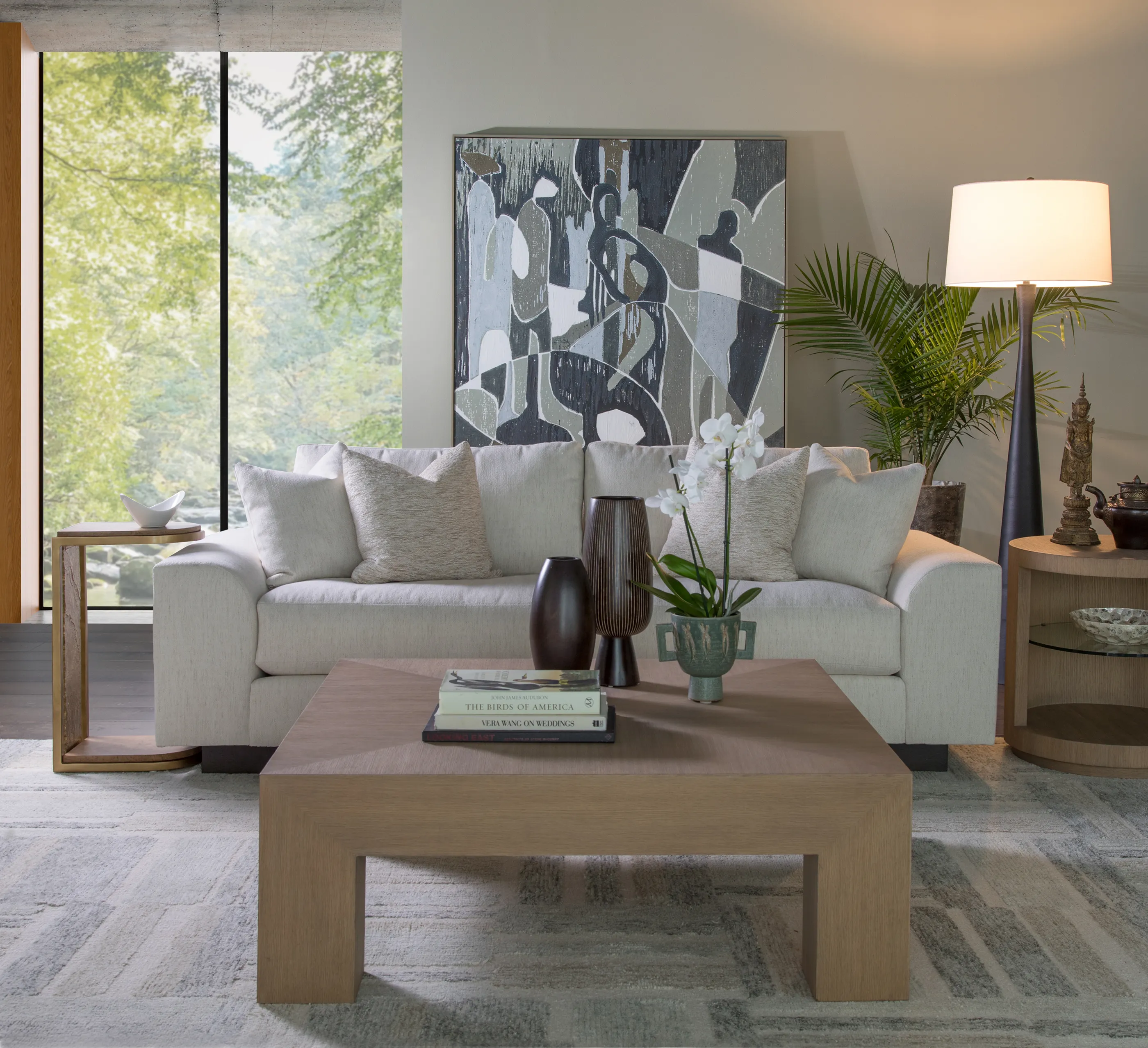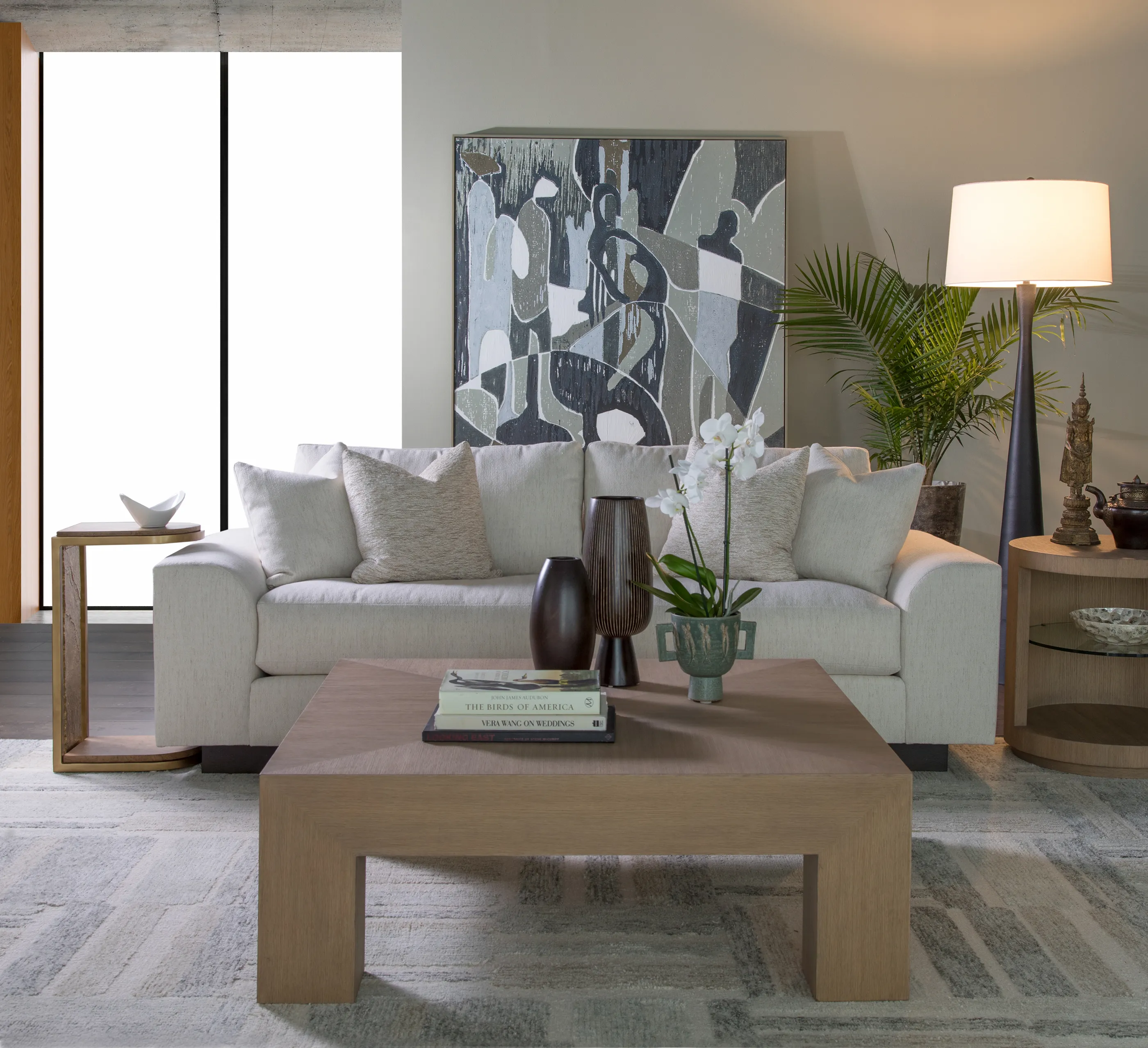Great Room collection featuring New Traditional to Transitional original designs dressed in a natural white oak finish with light wire brushing and a silky, dry hand and appearance. Accent materials include Italian Carrara marble, natural seagrass, iron, and nature-form castings of Brazilian slate finished in champagne bronze. The term New Traditional is overused and typically undefined. To us, it means taking forms that have existed for many generations and interpreting them into the present as fresh and versatile designs with textural, on-trend finishes and materials...Simpatico represents exactly that.