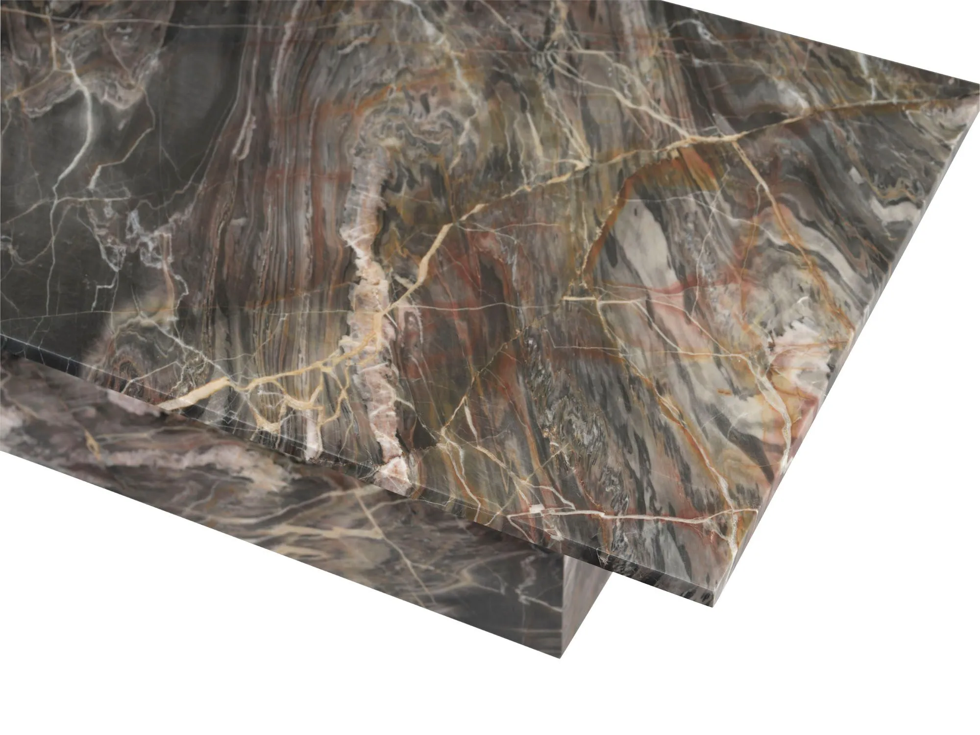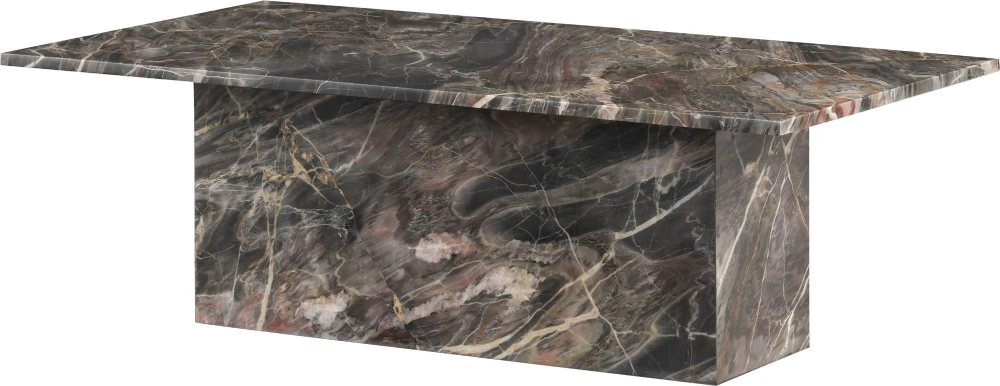 With a monolithic base and a smooth, naturally patterned tabletop, the Adalee Cocktail Table is a substantial and spirited piece. It is crafted entirely from Elegante Firefly marble.