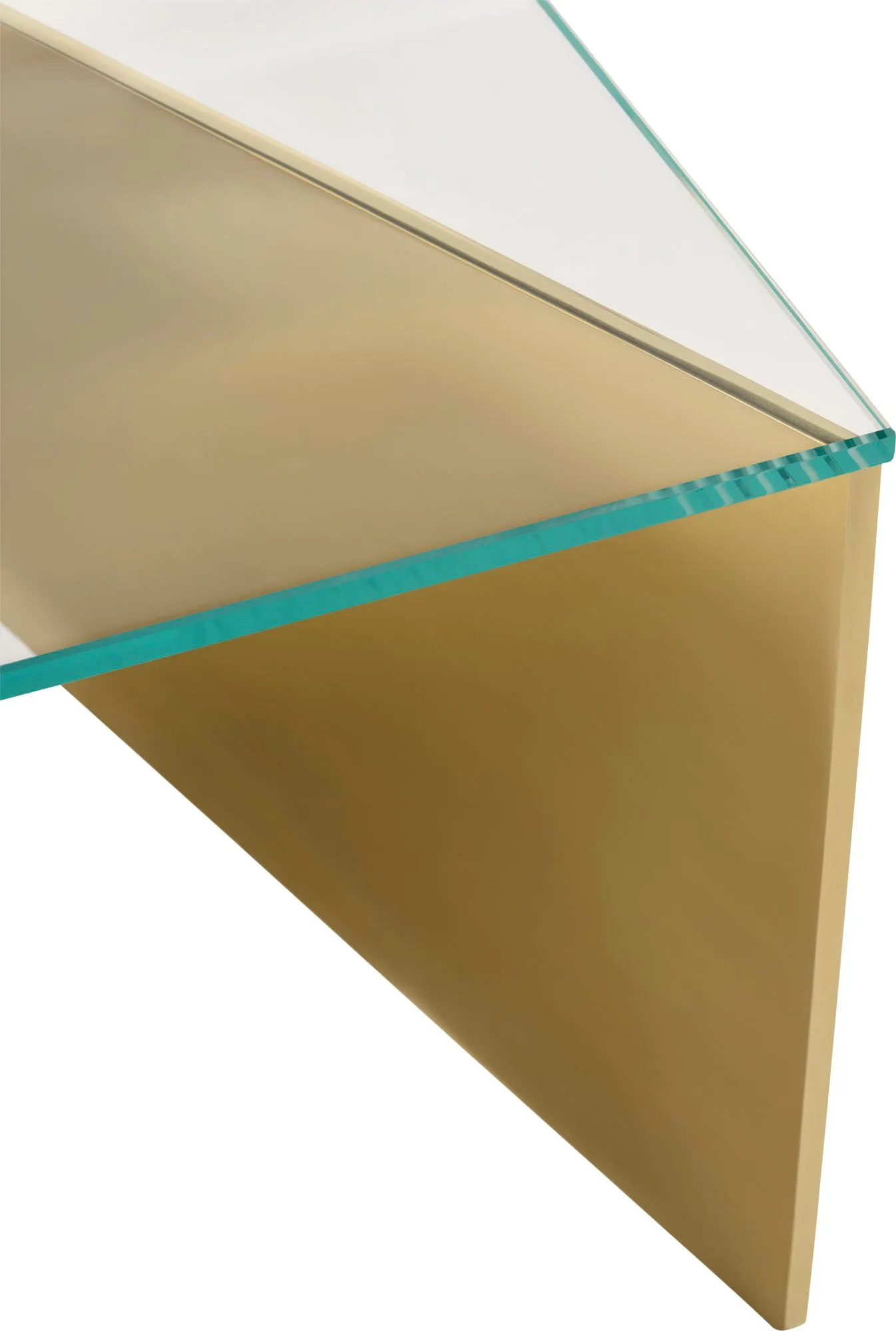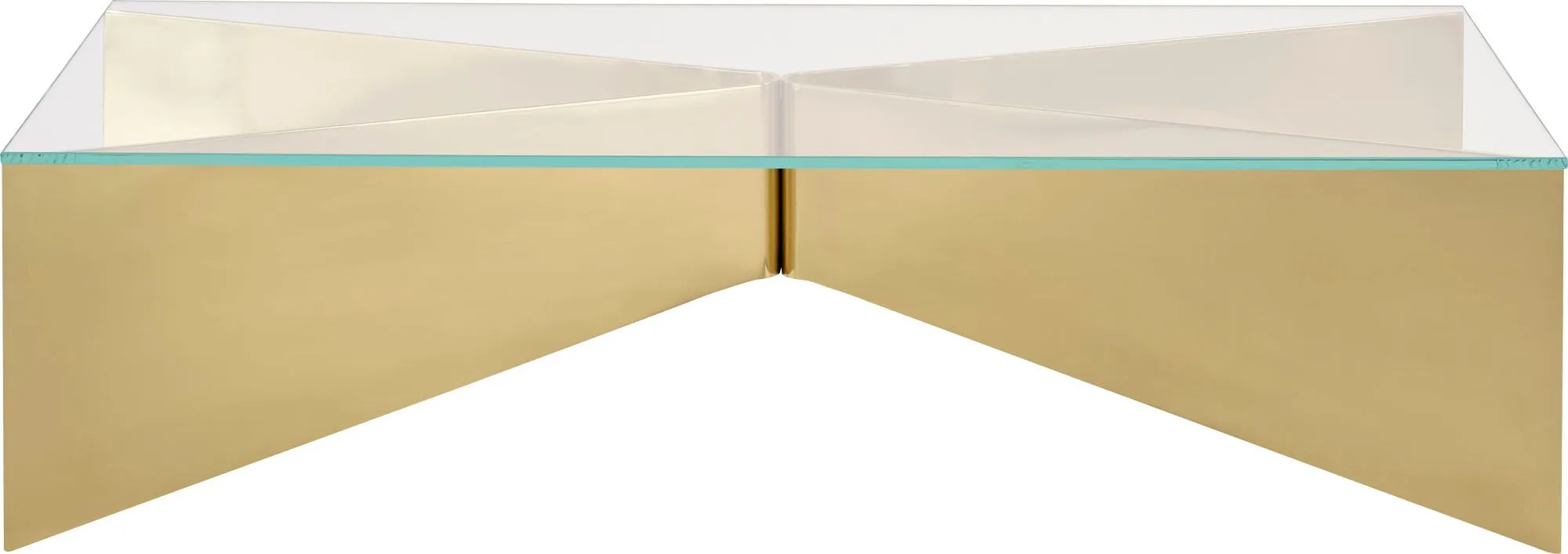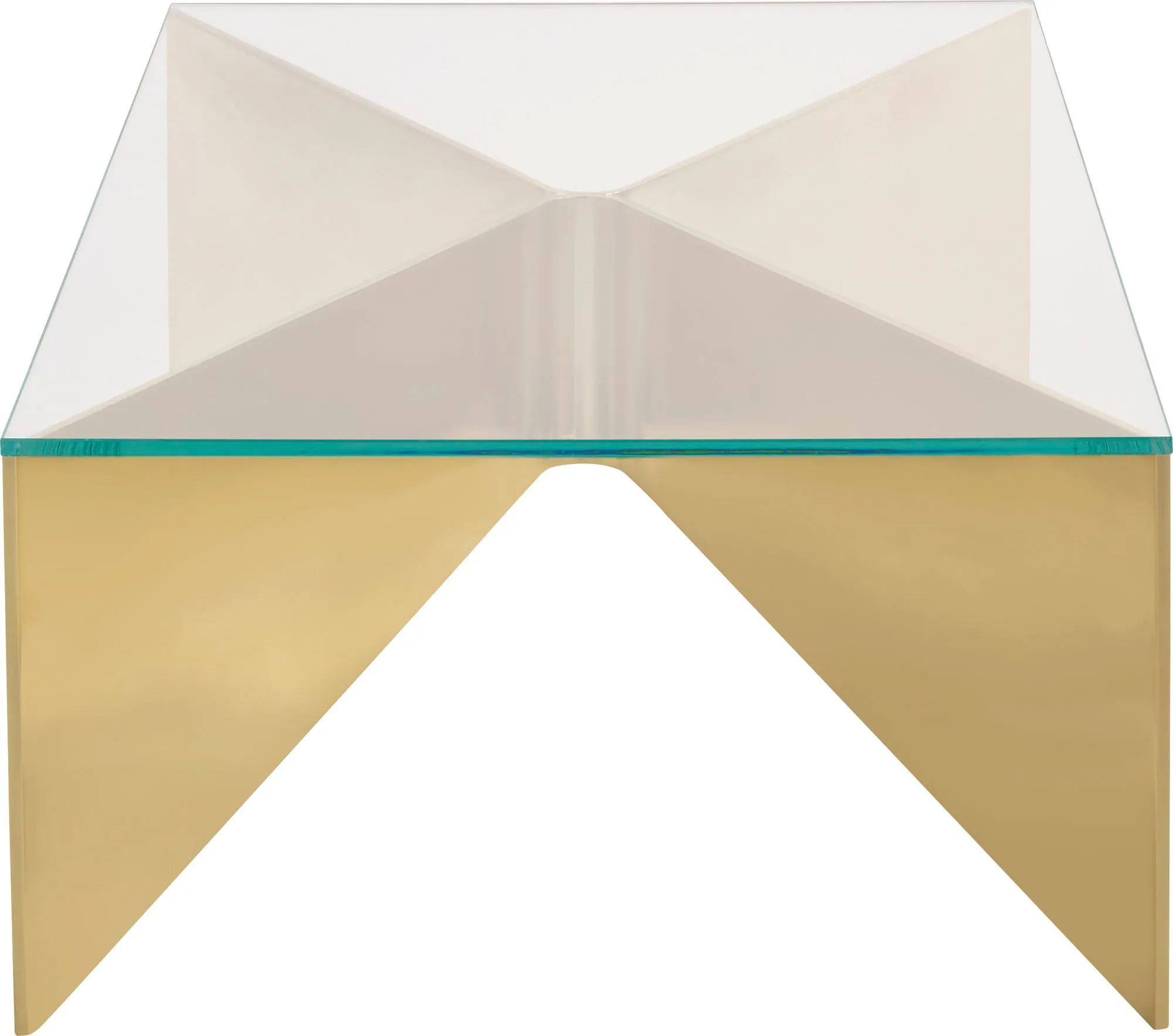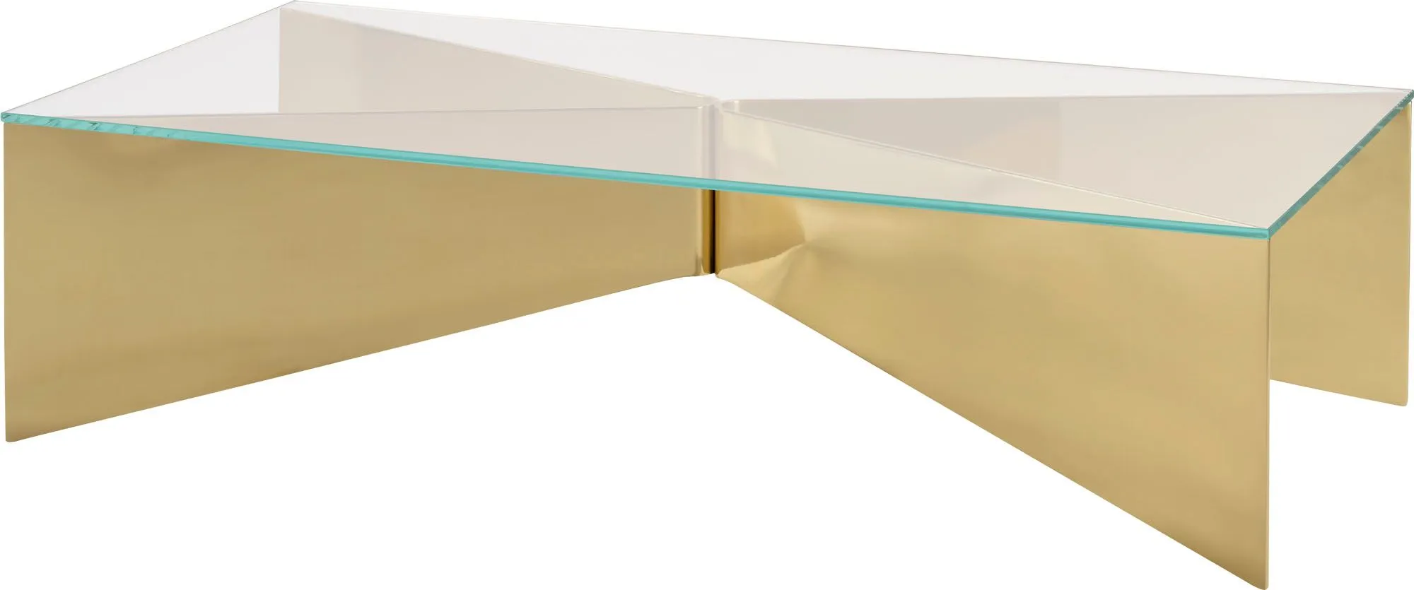 Resembling the design of an envelope, the Layla Cocktail Table is an artful piece with a story to tell. Two geometric sections in Pure Brass are joined to form its base, supporting a tabletop of beautiful Starphire glass.