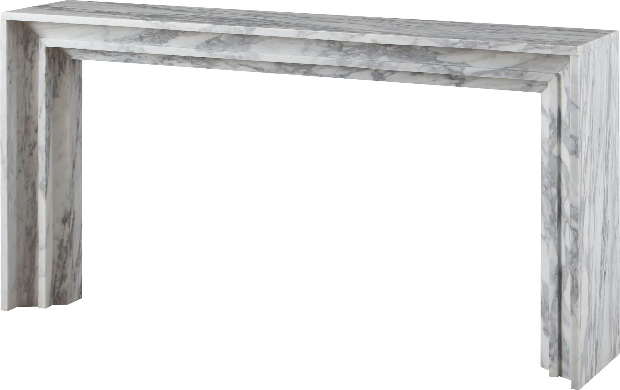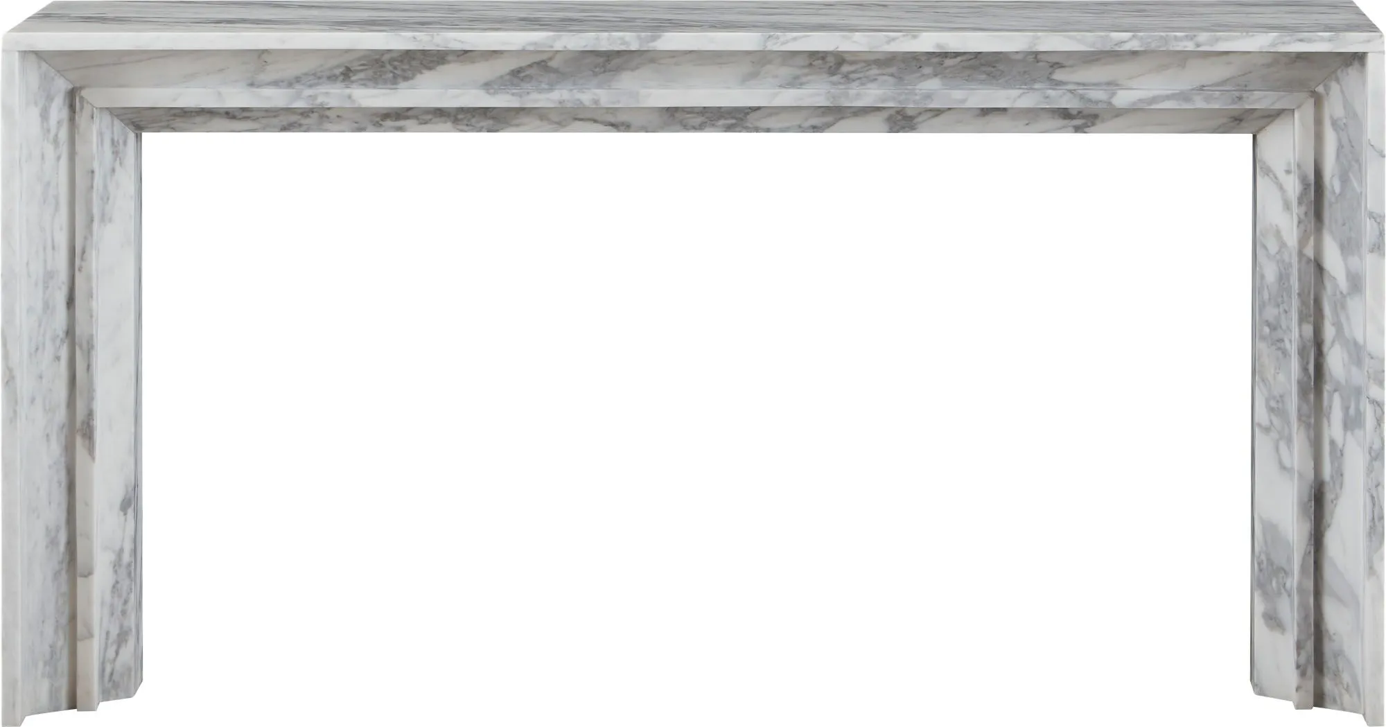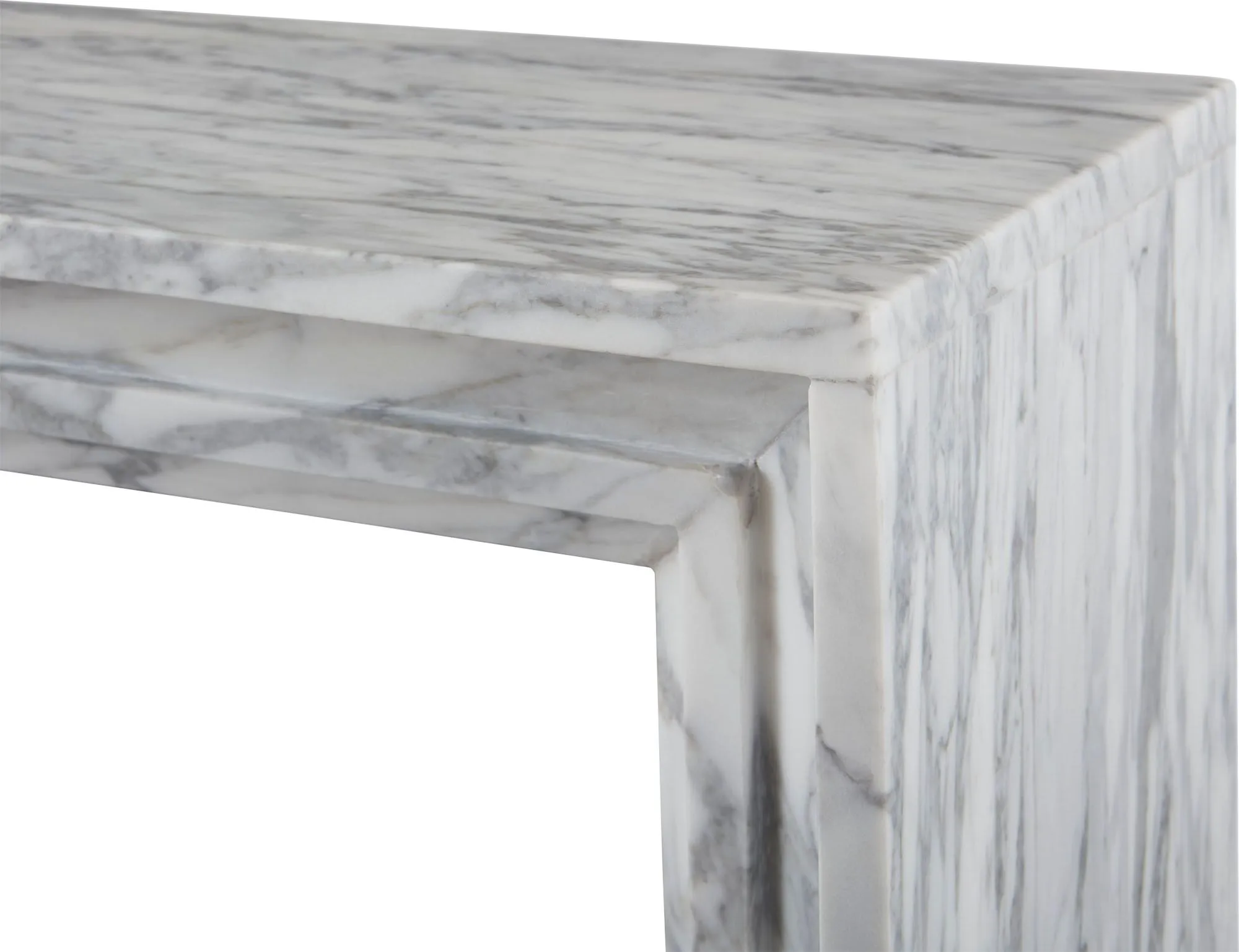 The Angelo Console is attention-getting from every angle, with modern bolection styling carved from white Arabescato marble.