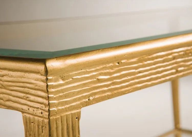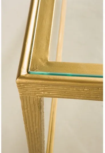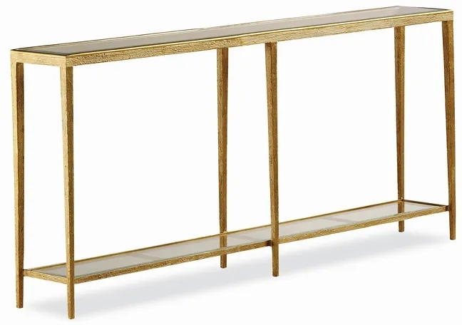 Features Console, Metal, Rectangular, Glass, Shelf, Brass