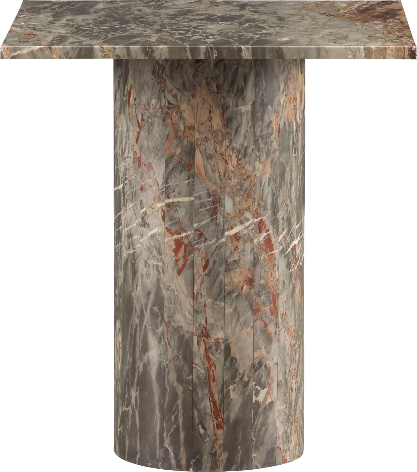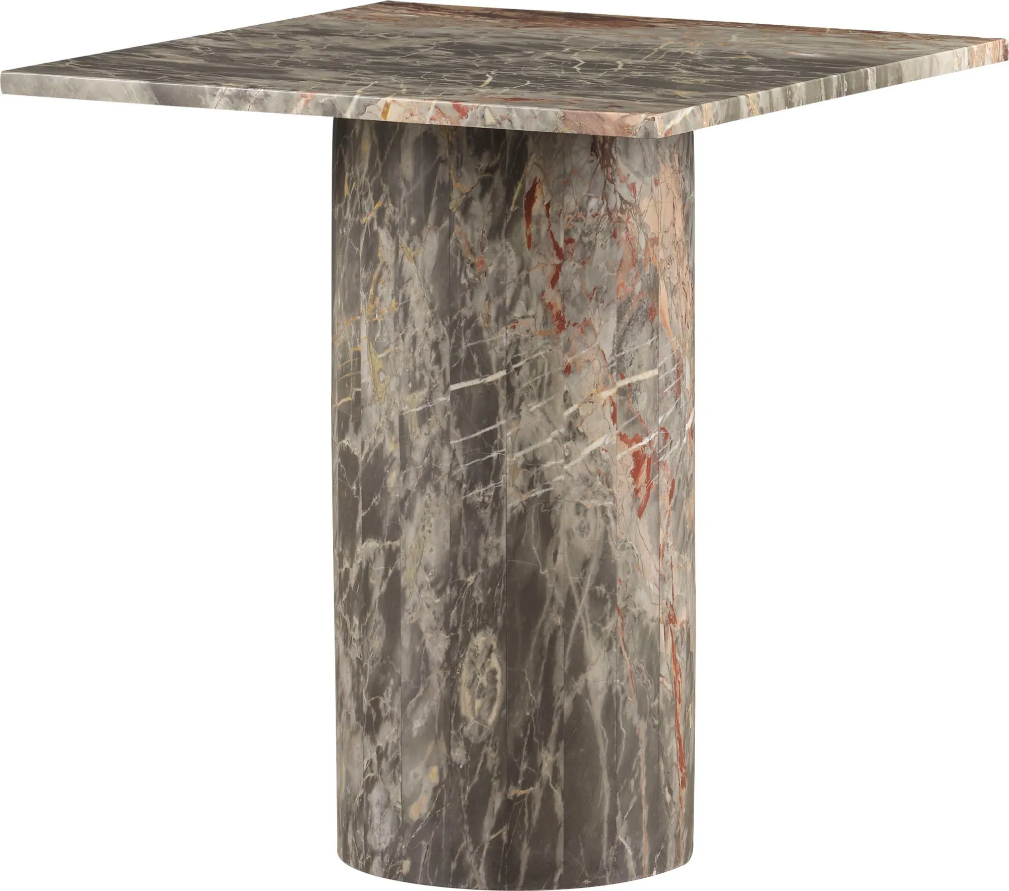 Made completely from elegant grey quartz, the Amara Side Table features a square tabletop resting on a cylindrical base. It is a luxurious piece that combines natural and modern shaping.