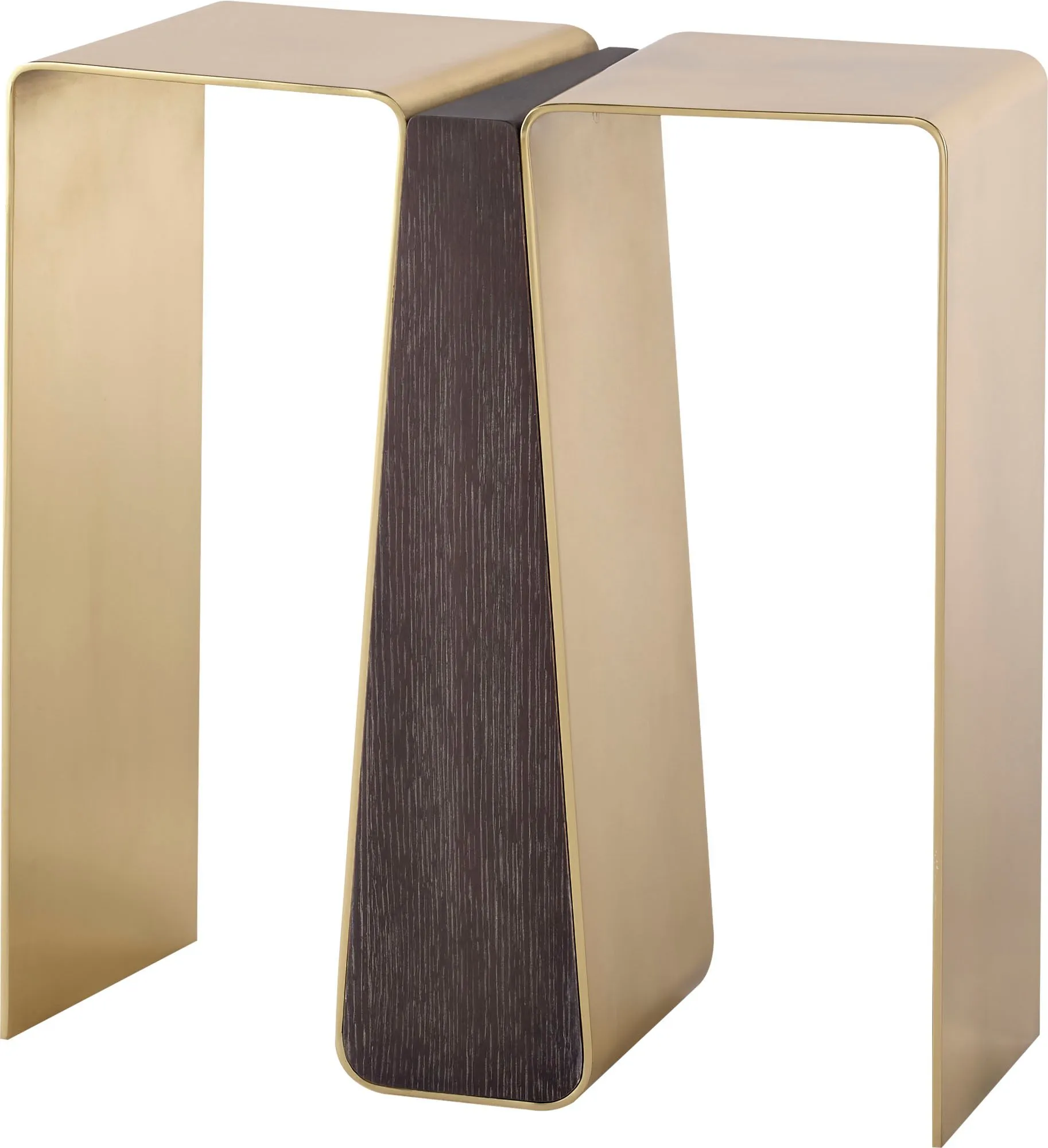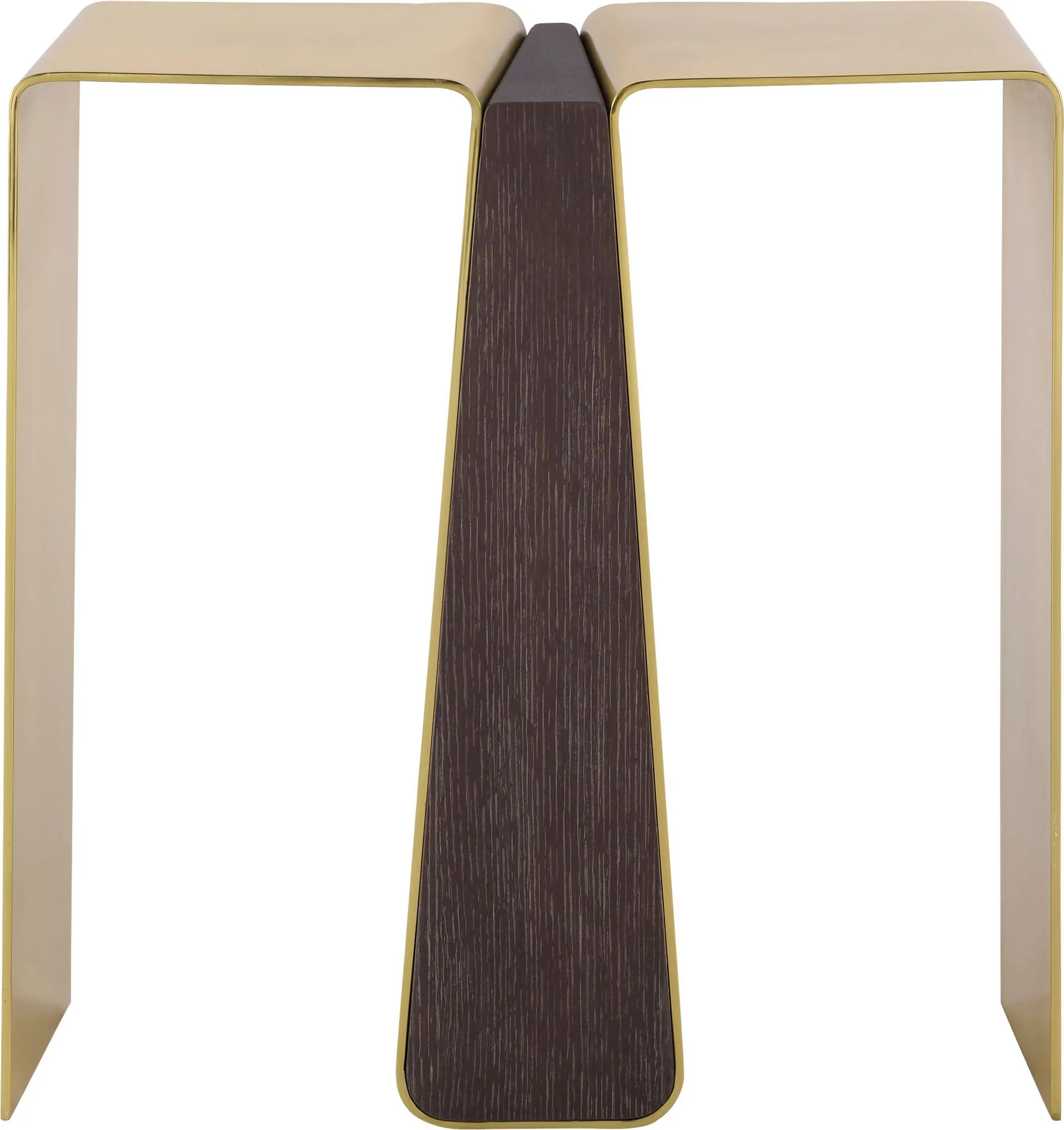 Similar to many pieces in the Luxe Collection, the Leilani Side Table takes its inspiration from the world of fashion—with a design that resembles the inverted pleats on vintage 1970s culottes. This narrow, attention-grabbing table features a quartered oak veneer insert and a frame in Pure Brass.
