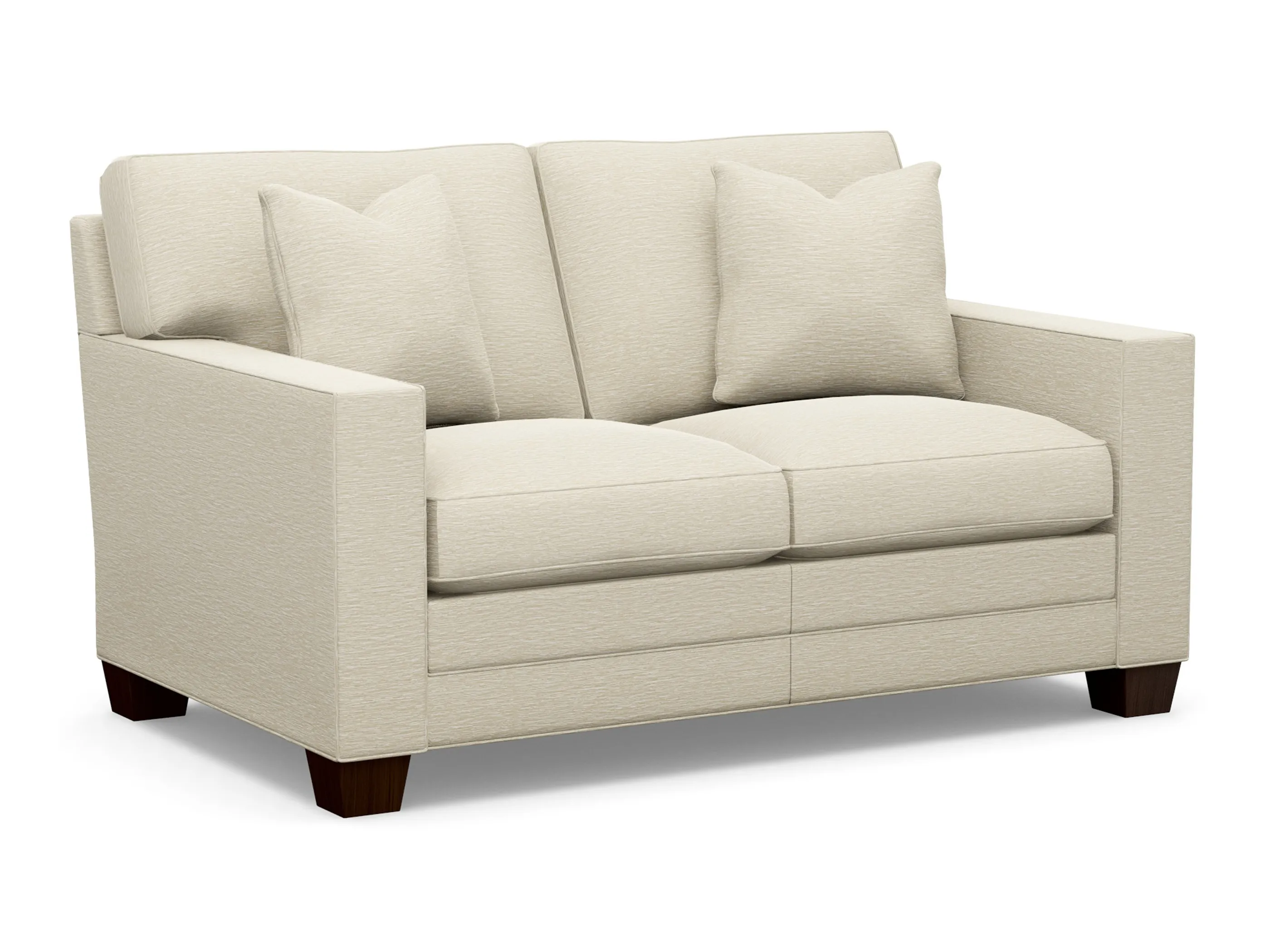 Create your personal design by selecting your: 1-Frame 2-Scale 3-Style 4-Seat Cushion 5-Back Cushion 6-Arm Style 7-Base 8-Body Welt 9-Nailhead Trim (optional) 10-Fabric and apply our no charge Final Touches options. Your selected arm style determines the overall width, ranging from 55-63 inches. This image represents one of a multitude of possibilities.