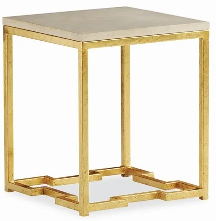 Finish: Gold Burnished Steel / Cast Travertine top