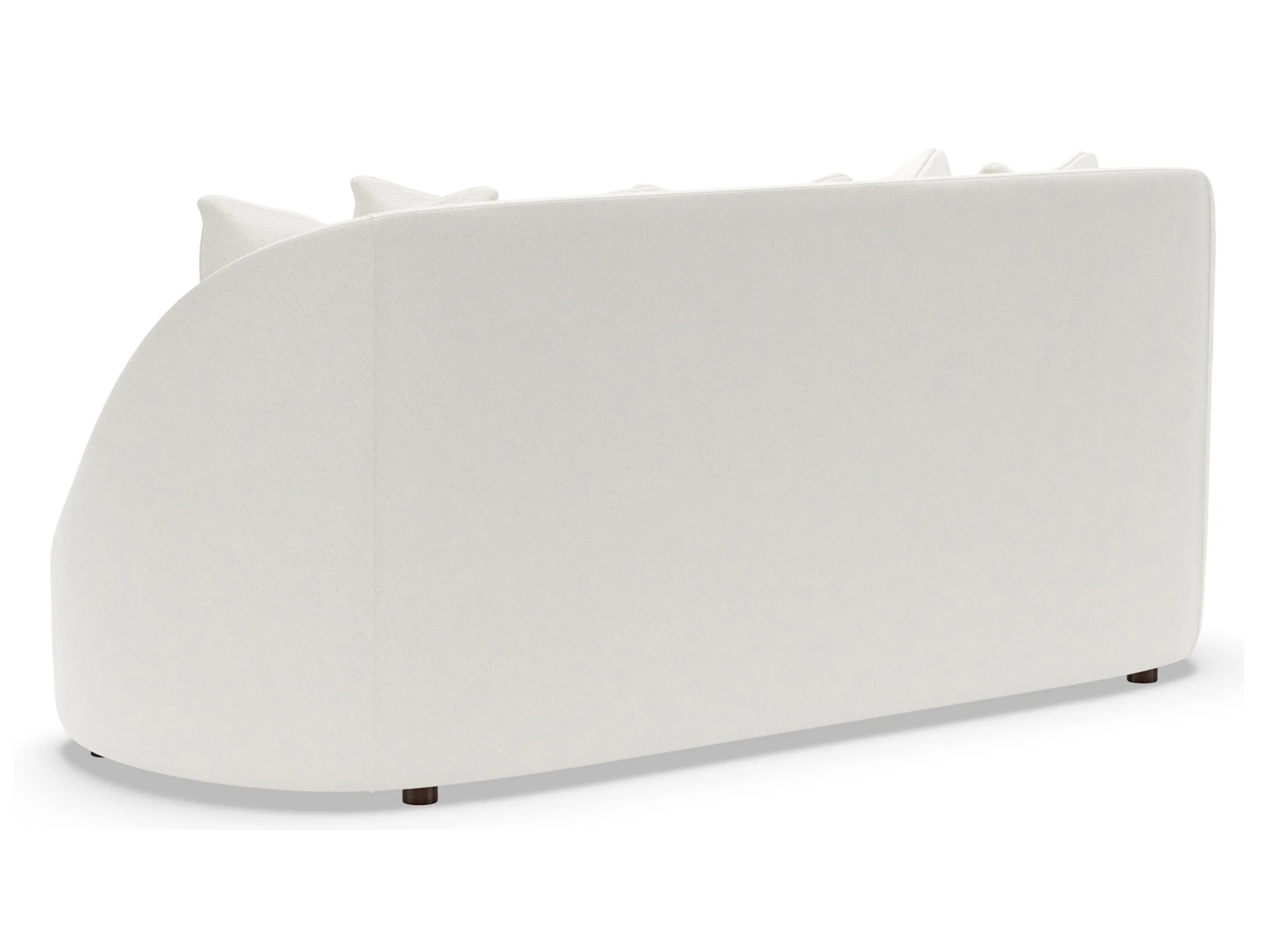 Modern silhouette with beautiful sculpted form featuring delicate tapering and shaping in both the in-backs and the outside trimming, with both meeting in an almost knife-like edge around the top rails that encircle the frame. Standard with five 20-inch lux down throw pillows over two ultra down seat cushions. Fabrics with stripes are not recommended for this frame.
