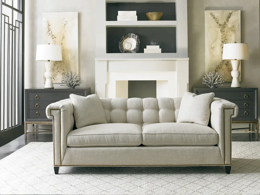 Features Nailhead, Wood Leg, Upholstered, Fabric