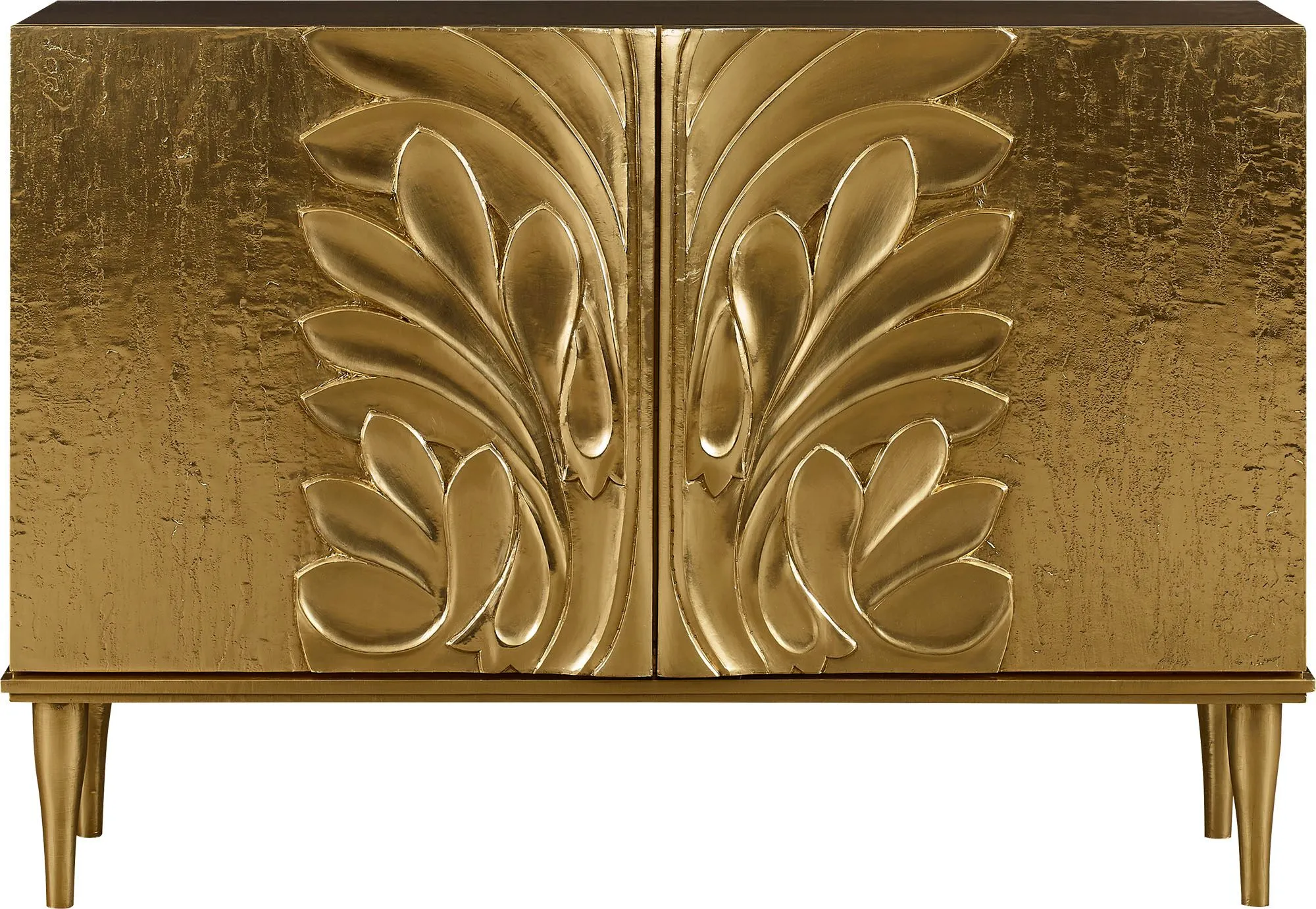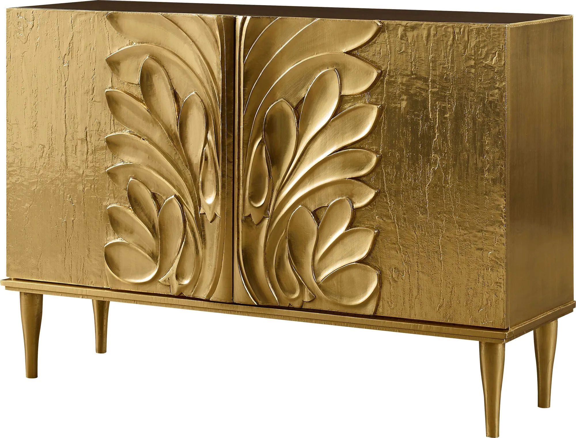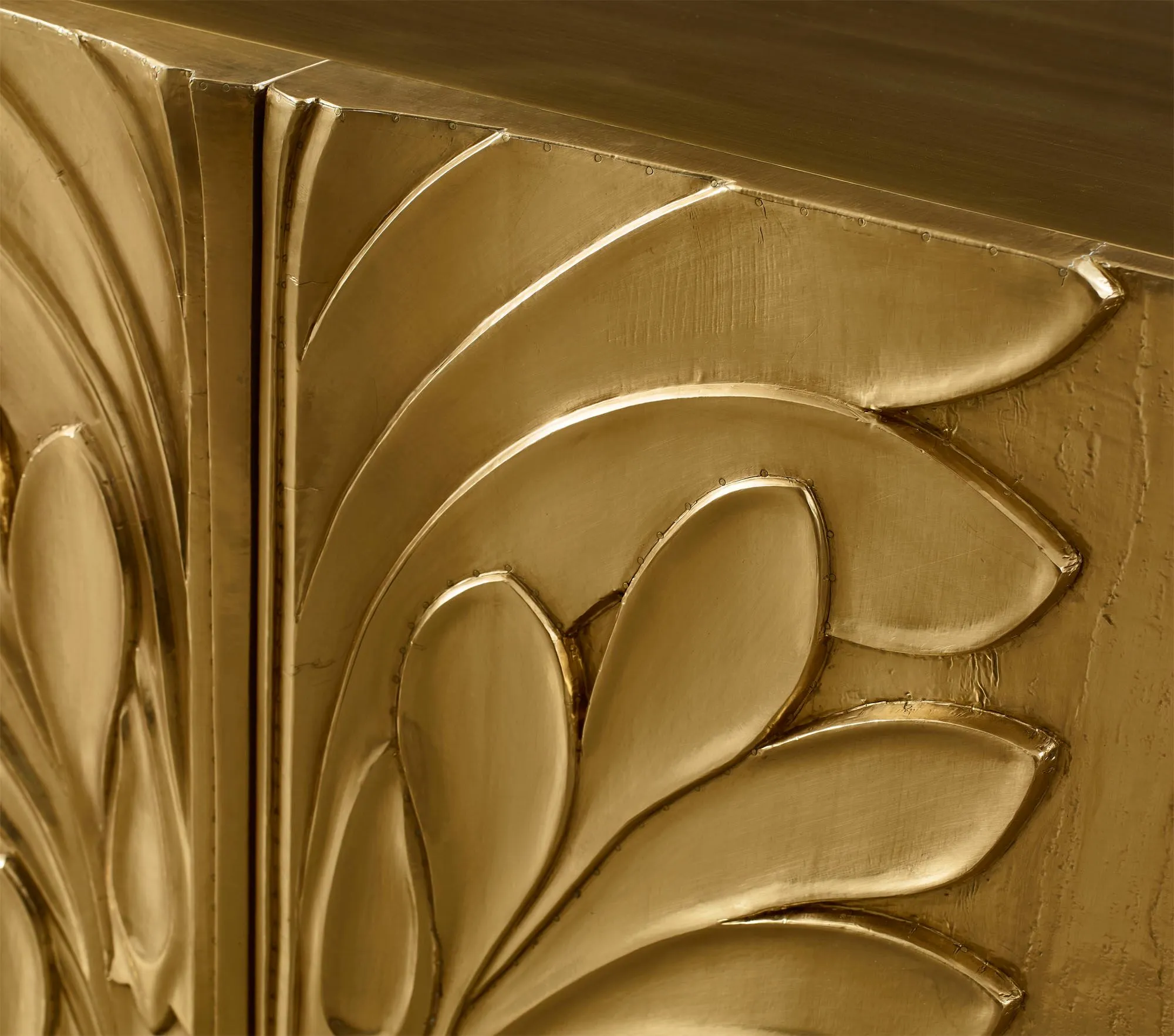 Smart, sculptural and whimsical, the brass Bella Chest is inspired by the imaginative foliage of a botanical garden.