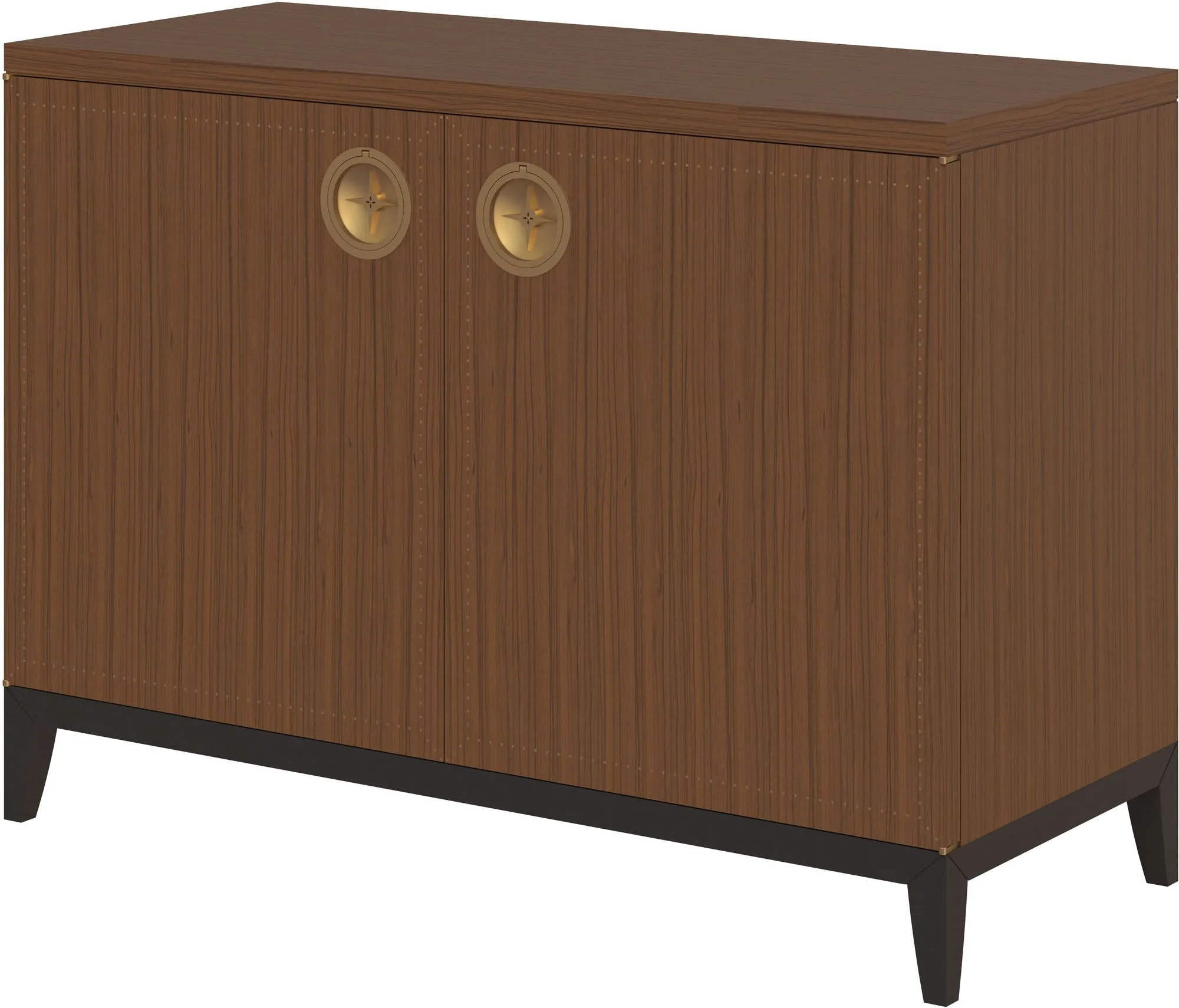 The Arca Chest is inspired by the voyaging spirit of former grand ocean liners, with refined details including handles akin to the recessed star pulls on the Arca. Metal accents in bright brass pair with mahogany door fronts, a ferrel foot and small square ring pulls in an expertly designed silhouette by Laura Kirar.