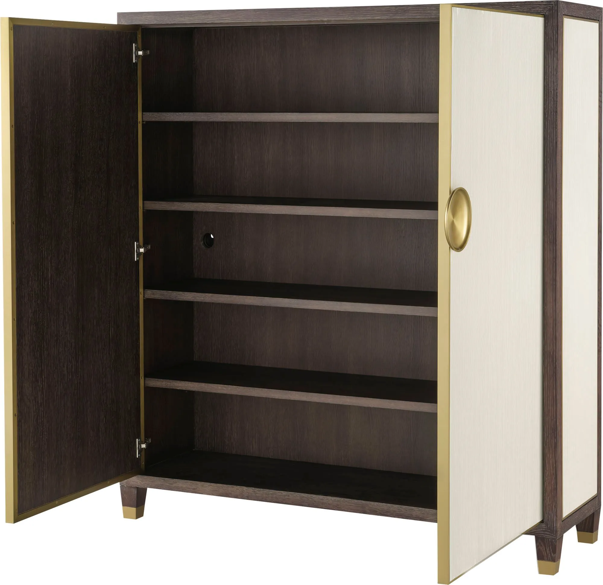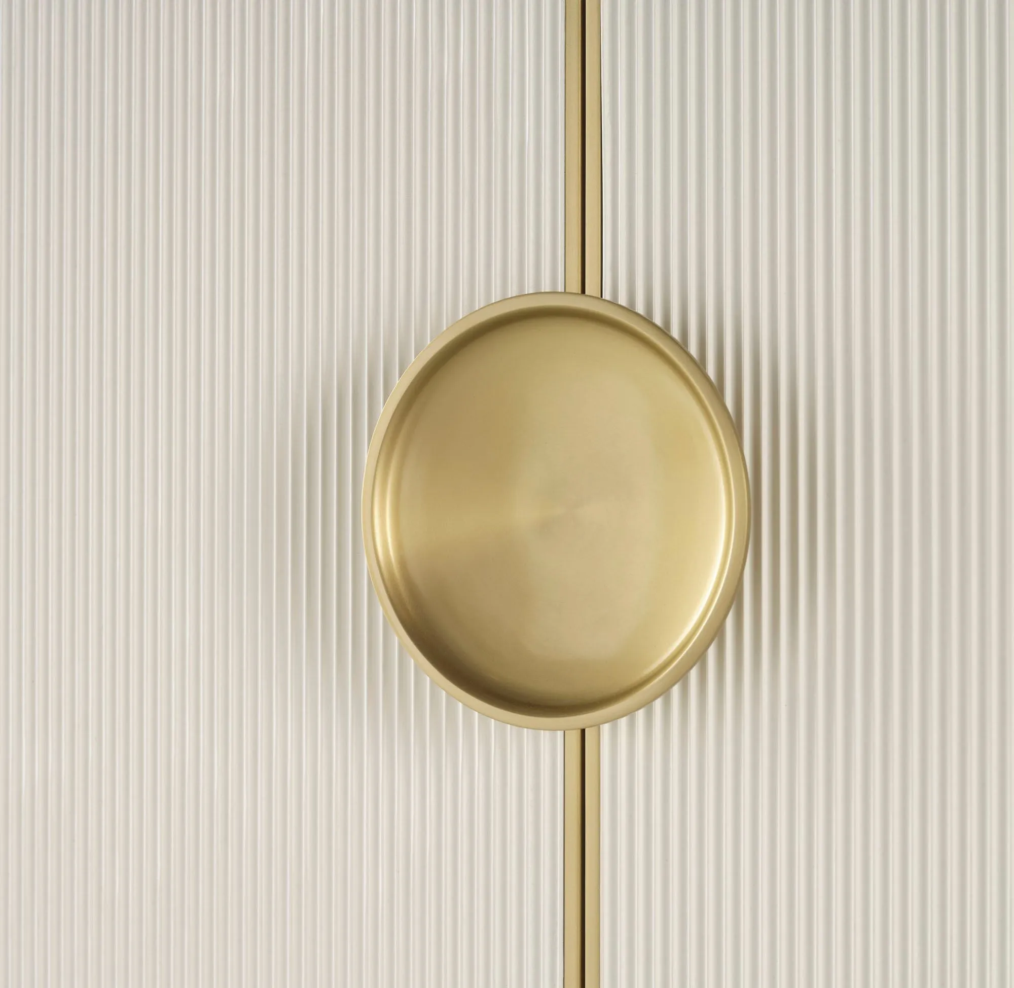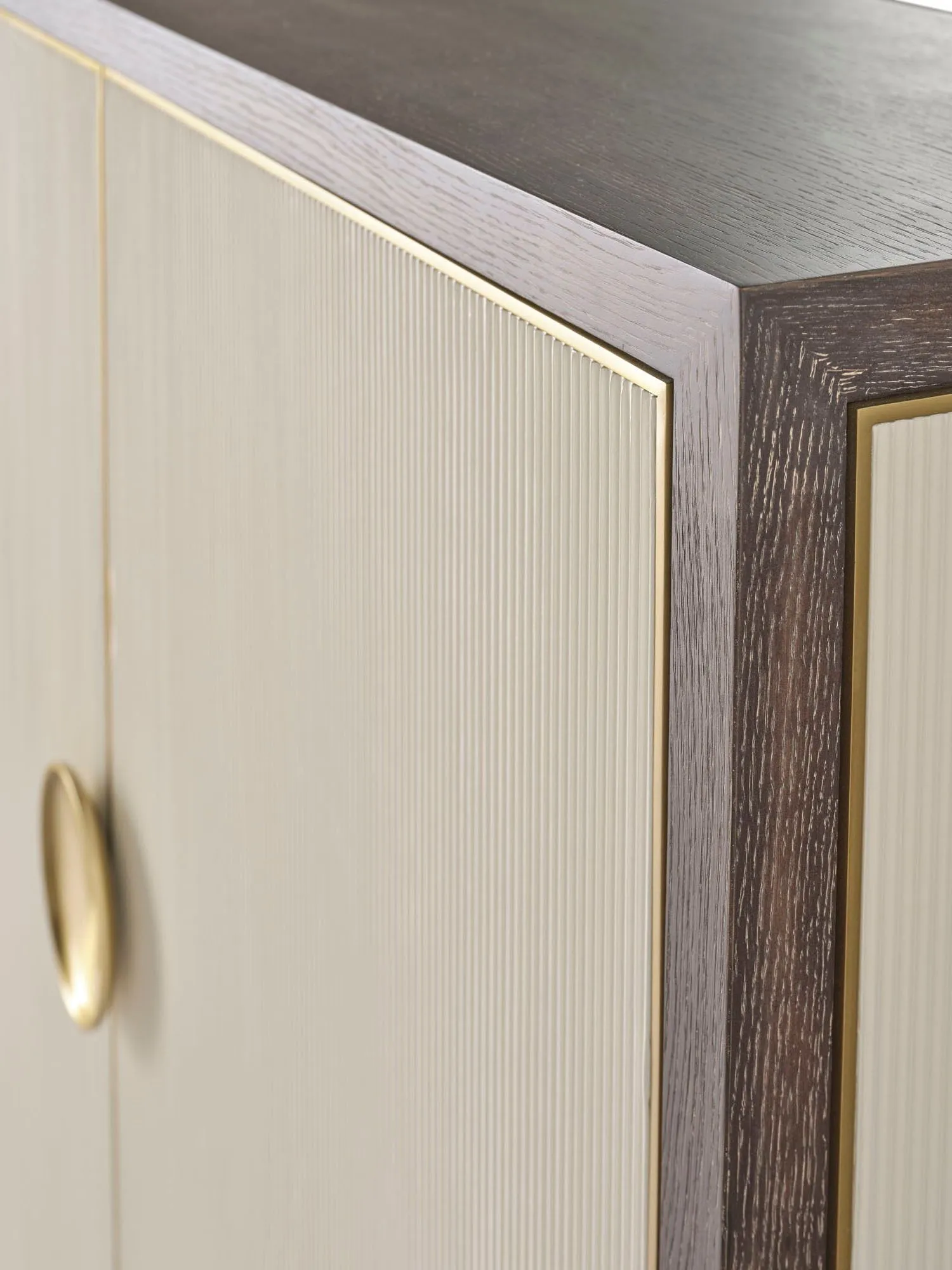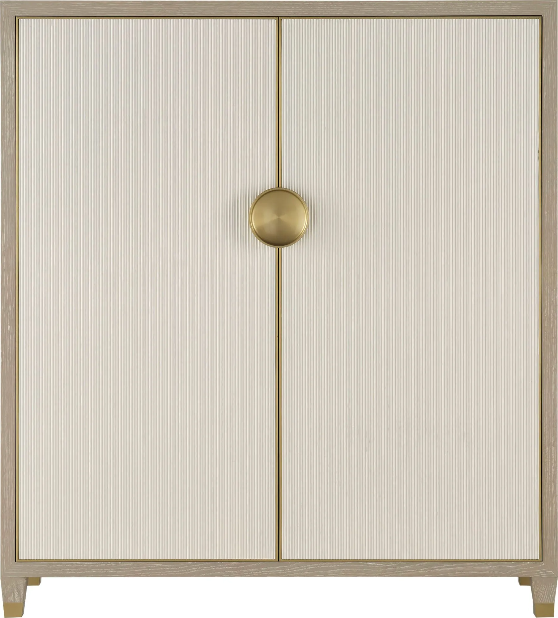 The Odeon Cabinet is a fresh, modern take on the design of 1930s France. Its simple monolithic form features an unusual textured door finish and simple circular hardware.