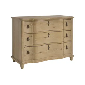 The striking profile features a sinuous figure-eight design on the three drawer fronts with plinth base.