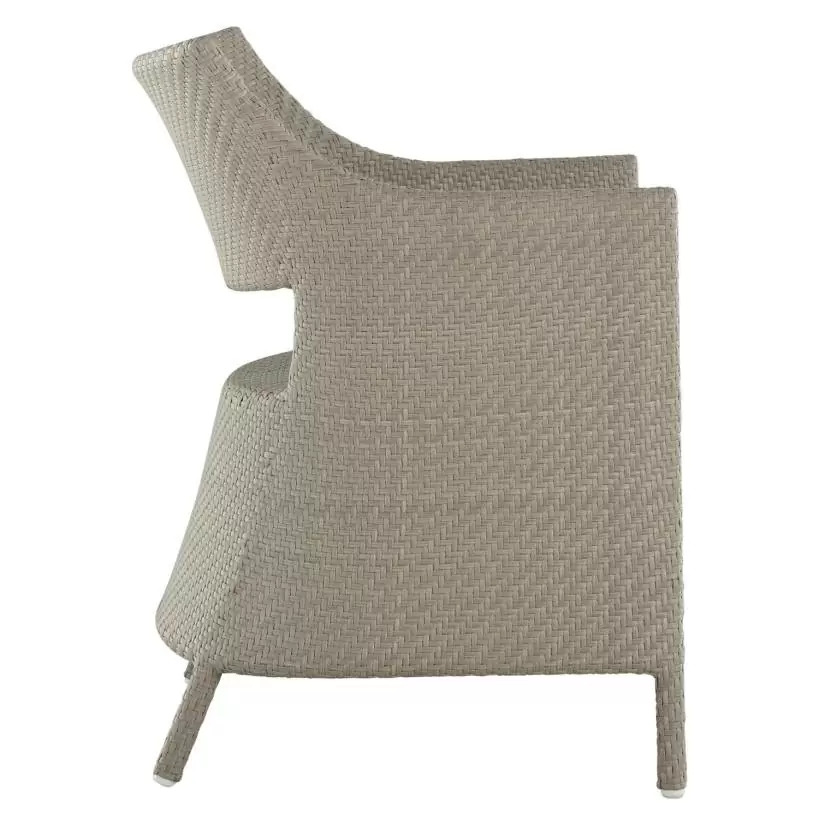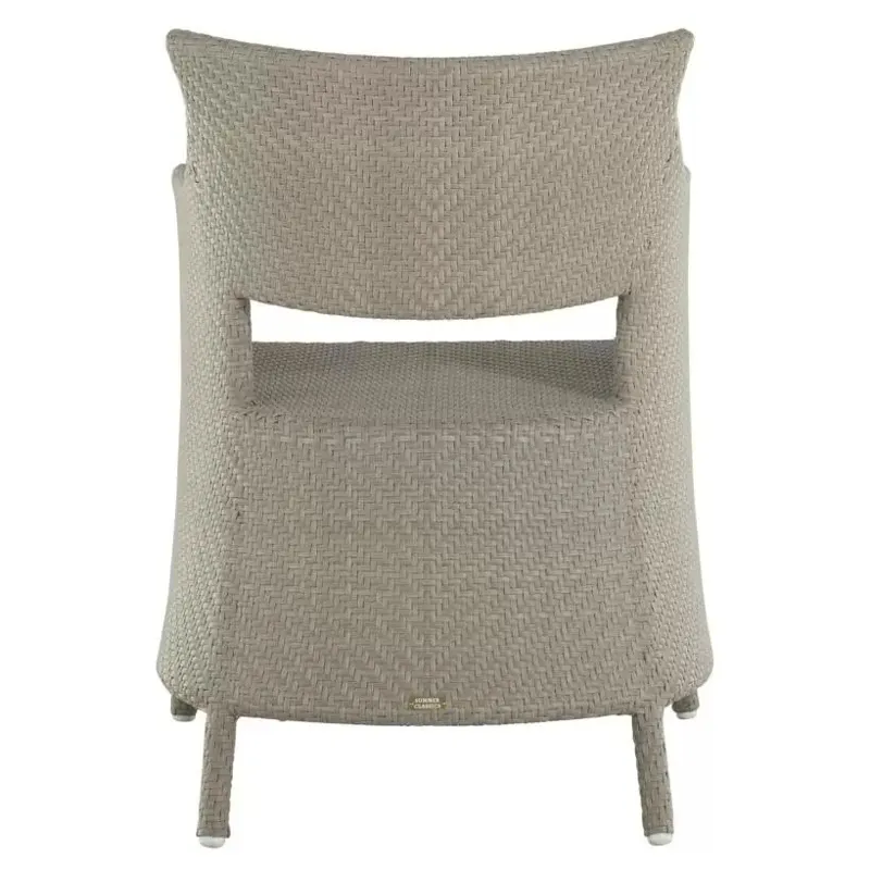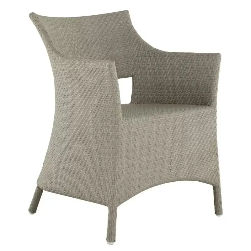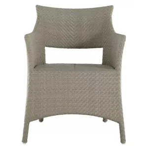 Elevate your outdoor dining with the Bari Arm Chair, featuring a sturdy aluminum frame woven with N-Duraâ„¢ resin wicker in a chevron design. Available in several finishes, this transitional piece combines contemporary style with traditional materials. Cushionless for ease, it's masterfully handwoven for quality, offering a durable, low-maintenance option that adds pattern and sophistication to any space. Our exclusive N-Duraâ„¢ Ultra UV Resistant Resin Wicker sets our outdoor furniture apart with unmatched durability and UV protection in the industry. This item is designed to be enjoyed either with or without a cushion. Please designate your choice in the below "Select a Cushion" dropdown.