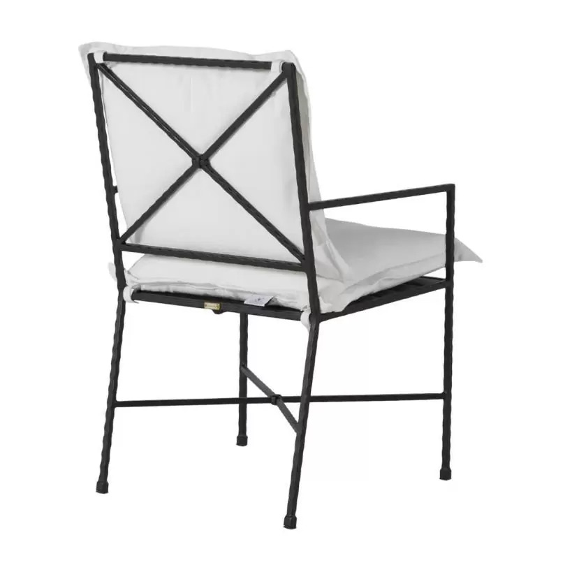 The Italia Arm Chair is a quintessential expression of classic Italian design, with its handcrafted hammered wrought iron frame and effortlessly stylish X-back detail. This chair comes complete with plush standard back and seat cushions, promising generations of comfort and elegance in your outdoor living space.