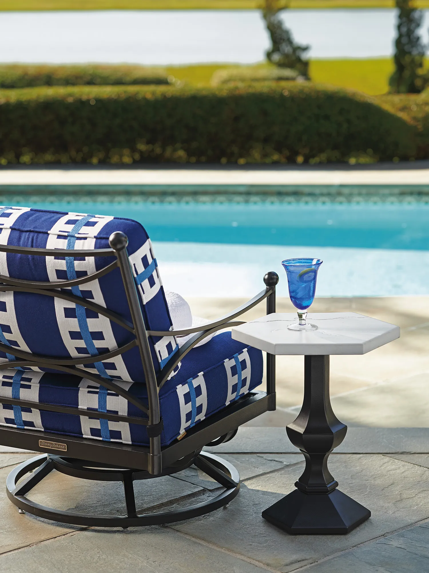 With designs highlighted by sweeping contours and graceful lines, the Pavlova collections offers a fresh interpretation of classic contemporary styling. Aluminum frames feature a sophisticated, lightly textured graphite finish, while table tops offer an elegant contrast, with surfaces that emulate the look and feel of honed limestone.