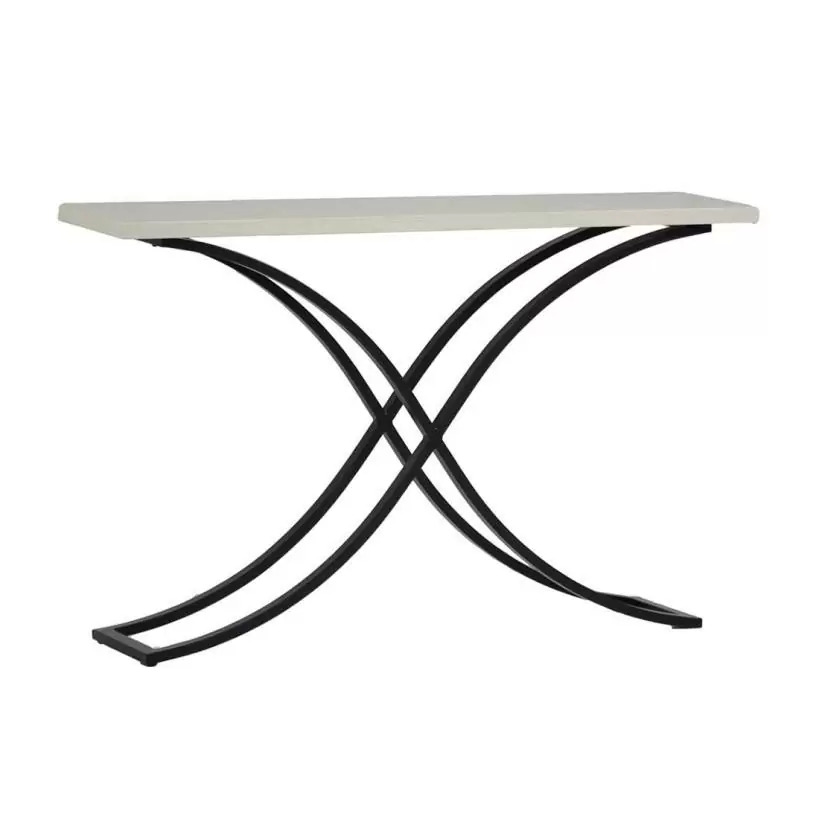 Sleek and sophisticated with weather-resistant durability, the Marco Console is crafted with a steel base and a travertine Superstone surface. Intersecting legs show off an enchanting three-dimensional design that will add graceful style to outdoor rooms.