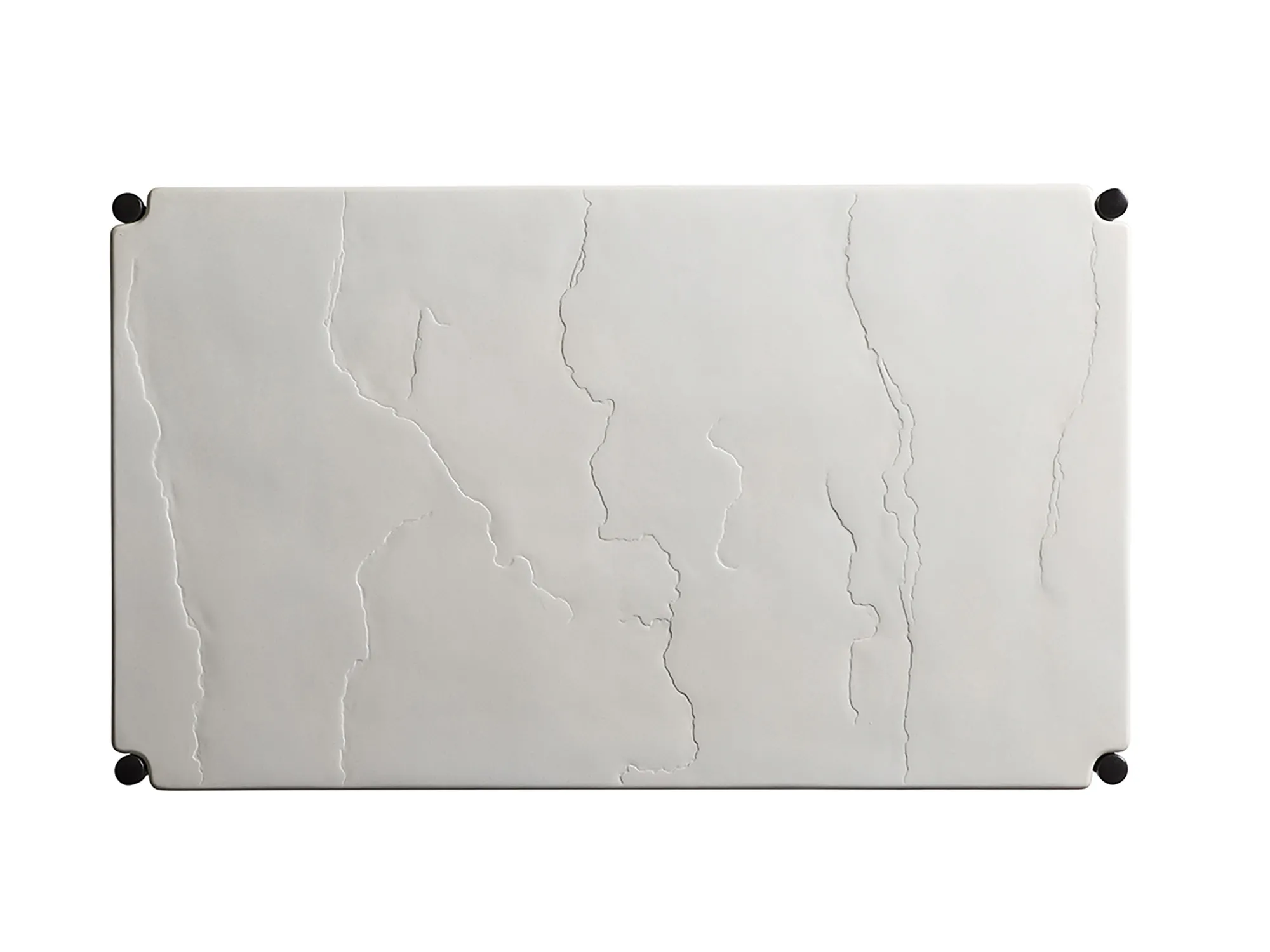 Pavlova occasional tables feature clean architectural lines with a cross-stretcher at the base and contemporary flared legs. Frames have a sophisticated, lightly textured graphic finish, and durable all-weather tops emulate the look and feel of honed natural limestone, in a soft ivory coloration, for a classic look.